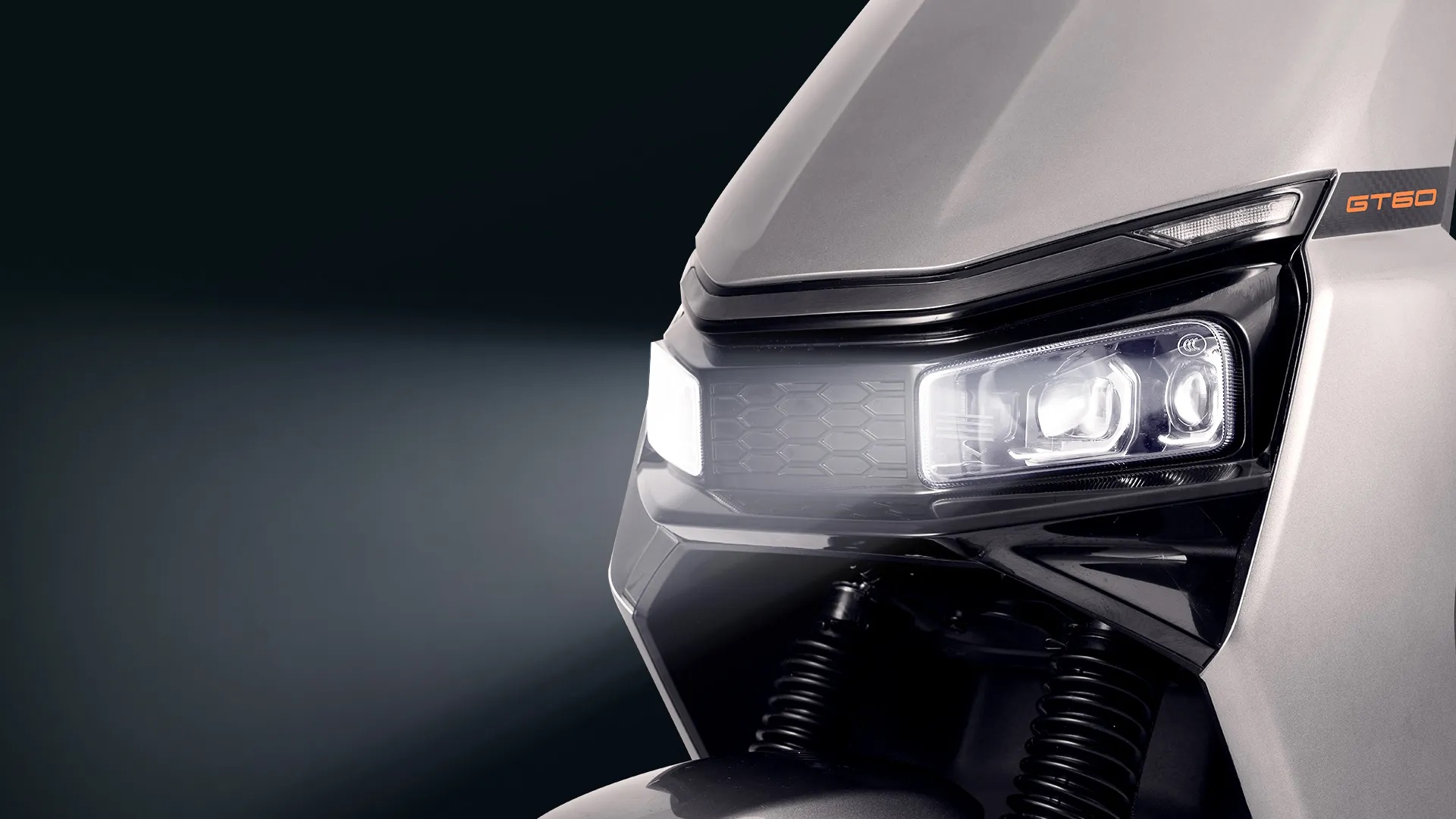 Светодиодная фара с четырьмая линзами.  GT60 оснащен хорошо узнаваемыми светодиодными фарами с